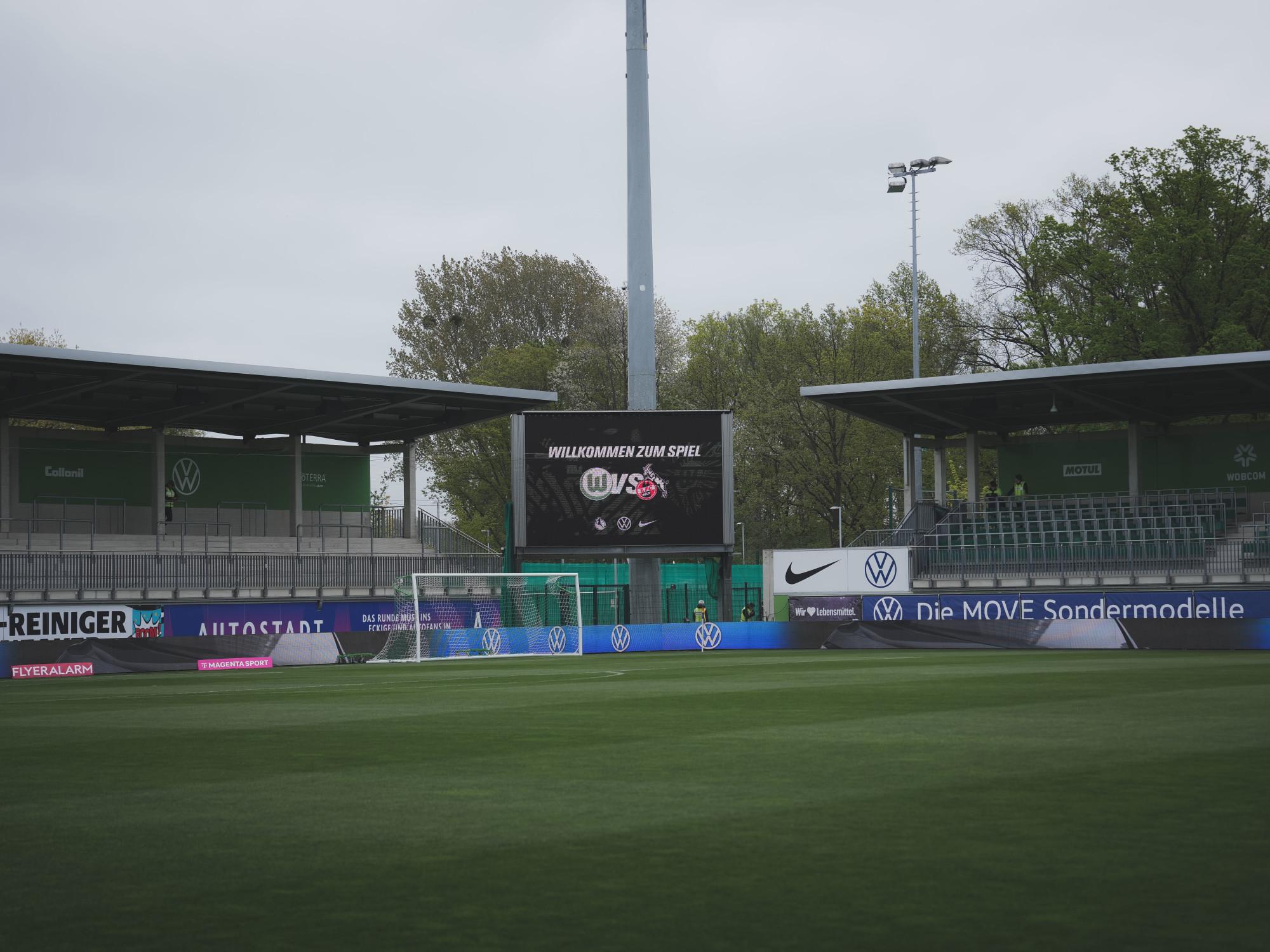 Der FC begann mutig beim Rekordmeister, musste mit der ersten Chance des Spiels aber den Rückstand hinnehmen. Nach einem Umschaltmoment gab es einen Stellungsfehler in der Kölner Verteidigung, den Lineth Beerensteyn ausnutzte und freistehend vor Irina Fuchs einschob (4.). Die FC-Frauen waren davon allerdings nicht beeindruckt und dominierten die Partie weiter, hatten Abschlüsse etwa durch Adriana Achcinska (15.) oder Sandra Maria Jessen (19.). Der Aufwand wurde in der 22. Minute belohnt: Nach einem starken Diagonalball von Weronika Zawistowska wurde der Flankenversuch von Martyna Wianowska von Wolfsburgs Sarai Linder ins eigene Tor abgefälscht.